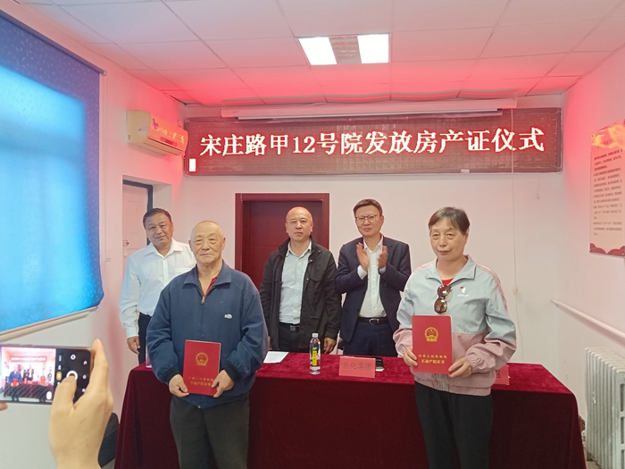 北京化工集團副總經理李效軍以及所在社區負責人,北搪公司、化工廠相關領導共同見證房產證發放儀式,親手將房產證交到住戶手中。