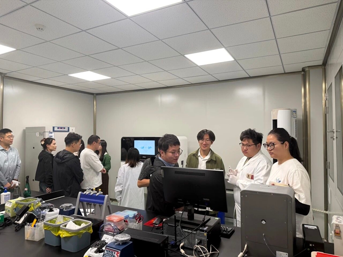 團員青年們來到毗鄰清華大學、北京大學的北化生科公司國際生物島現場參觀學習。工作人員介紹了北化生科公司的整體規劃與發展歷程,重點介紹了集團生物醫藥產業布局、核心服務平臺功能、重點產業集群優勢以及未來發展目標愿景。隨后,團員青年們走進實驗室,專業人員為他們講解了基因測序等基礎知識,并結合正在開展的科研項目,生動介紹了這些技術在實際研發中的應用場景與巨大潛力。