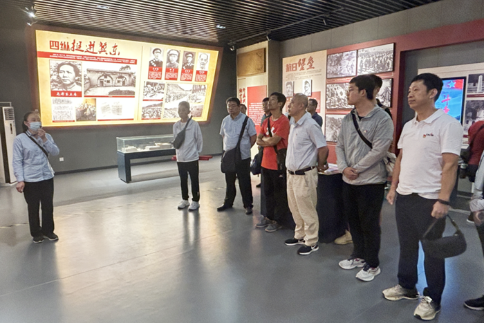 在參觀中,一張張記錄著抗爭外辱的照片、一件件反映民族抗戰(zhàn)的歷史實物,訴說著魚子山人民抗戰(zhàn)的艱辛與決絕。大家被他們大無畏的犧牲精神深深地感染著,在紀念碑前,大家激動地重溫入黨誓詞。