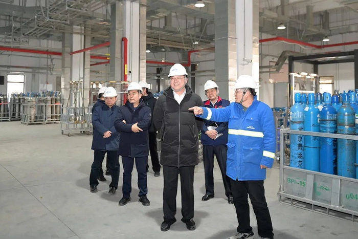 陳宇首先走進北普工廠,深入生產一線了解氣體保供情況 。陳宇詳細查看了北普工廠灌裝生產線運行情況、氧氣瓶安全裝卸、運輸和各類氣瓶的存儲情況。詳細了解了節日期間首都各大醫院需求情況及保障措施。叮囑一線干部職工要始終把安全生產放在首位,堅決扛起節日期間安全生產主體責任,同時要加強調度,為首都各大醫院提供及時便捷的保障服務,確保首都市民度過一個安全健康的春節。