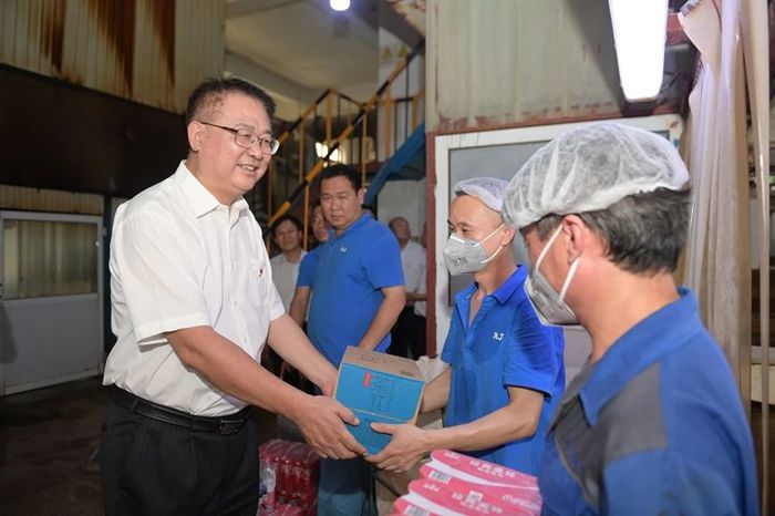 7月9日下午,北京化工集團(tuán)黨委書記、董事長陳宇,黨委副書記吳瑞峰,黨委常委、副總經(jīng)理韓寶海,黨委常委、紀(jì)委書記常延輝來到華騰橡塑,進(jìn)車間、到班組,親手將一份份清涼飲品送到一線職工手中。慰問過程中,陳宇詳細(xì)了解一線職工工作生活情況,對(duì)大家冒著高溫酷暑,以高度的責(zé)任感和飽滿的工作熱情堅(jiān)守一線給予充分肯定。陳宇叮囑大家既要高質(zhì)量完成好本職工作,又要時(shí)刻關(guān)注身心健康,集團(tuán)各級(jí)黨組織和工會(huì)組織要從各方面確保防暑降溫工作落到實(shí)處,保證干部職工健康安全。