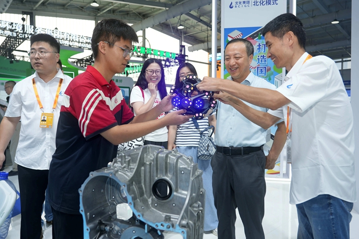 致力于職業(yè)技能人才培養(yǎng)的技師學(xué)院,在互動中呈現(xiàn)世界技能大賽金牌項(xiàng)目——機(jī)電一體化的卓越成果,學(xué)院以人機(jī)互聯(lián)的3D掃描和工業(yè)機(jī)器人吸引了大批參觀者駐足,讓觀眾近距離感受產(chǎn)教融合的創(chuàng)新實(shí)踐和“化工+教育”的協(xié)同價(jià)值。